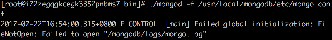cd mongodb/mongodb-linux-x86_64-3.4.6/bin //進(jìn)入安裝包的bin目錄下mongod -f /usr/local/mongodb/etc/mongo.conf //啟動(dòng)1方法 或./mongod -f /usr/local/mongodb/etc/mongo.conf //啟動(dòng)2方法