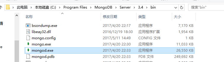 為了從命令提示符下運行MongoDB服務(wù)器,你必須從MongoDB目錄的bin目錄中執(zhí)行mongod.exe文件,這是我的安裝路徑,在路徑中找到mongod.exe文件。