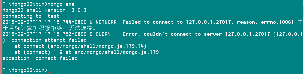 如果服務端沒有開啟的話,會出現如下無法連接的錯誤: