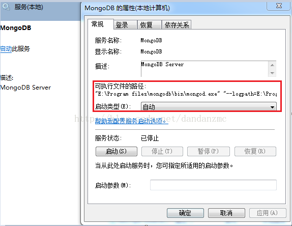 查看服務屬性,Mongo的地址是已經刪除了的個地址,而不是當前我用的這個地址。當前用的地址是:E:/Program files/mongodb/bin