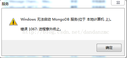 再次啟動MongoDB服務,啟動失敗,出現1607錯誤。