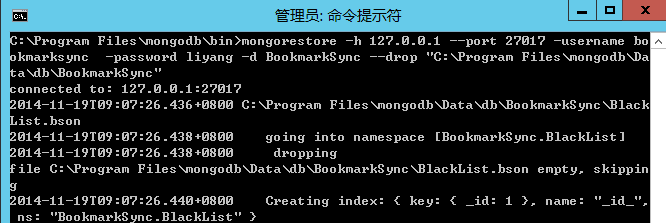 使用mongodump備份的數據,需要使用mongorestore來恢復。