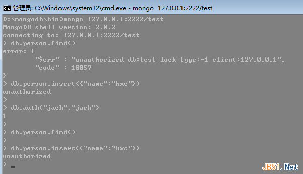 好了,我們進(jìn)入test集合翻翻數(shù)據(jù)看看情況,我們發(fā)現(xiàn)jack用戶始終都是沒有寫入的權(quán)限,不管是授權(quán)或者未授權(quán)。