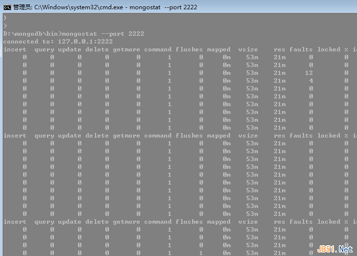前面那些統(tǒng)計(jì)信息再牛X,那也是靜態(tài)統(tǒng)計(jì),不能讓我觀看實(shí)時(shí)數(shù)據(jù)變化,還好,mongodb里面提供了這里要說(shuō)的mongodstat