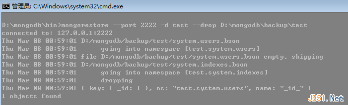 快看,數(shù)據(jù)已經(jīng)備份過(guò)來(lái)了,太爽了,現(xiàn)在我們用mongorestore恢復(fù)過(guò)去,記住啊,它是不用關(guān)閉機(jī)器的。