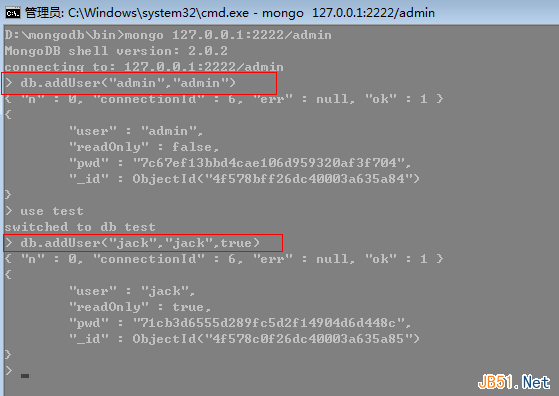 驗(yàn)證的方法,那么該怎么做呢?其實(shí)很簡(jiǎn)單,mongodb提供了addUser方法,還有一個(gè)注意點(diǎn)就是如果在admin數(shù)據(jù)庫(kù)中添加