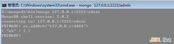然后我們在admin集合中使用rs.addArb()追加即可。