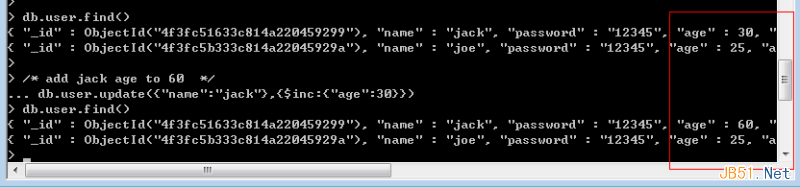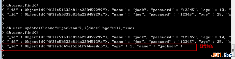 自增$inc指定的值,如果“文檔”中沒有此key,則會創建key,下面的例子一看就懂。