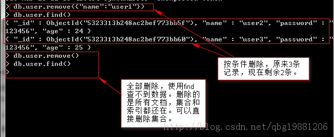 remove函數(shù)可以用來刪除數(shù)據(jù),它能接受一個文檔作為可選參數(shù),只有符合條件的文檔才會被刪除。刪除數(shù)據(jù)是永久性的,不能撤銷,也不能恢復,需要謹慎。刪除文檔需要清空整個集合,不如直接刪除集合快。