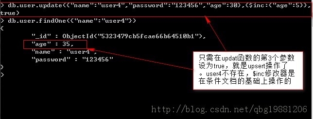 upsert操作具有saveOrUpdate的功能,如果沒有文檔符合更新條件,則以更新條件和更新文檔為基礎創(chuàng)建一個新的文檔。如果有符合更新條件的文檔,則正常更新。創(chuàng)建新文檔時會以條件文檔作為基礎,將修改器作用其之上。upsert操作是原子性的,高效的。