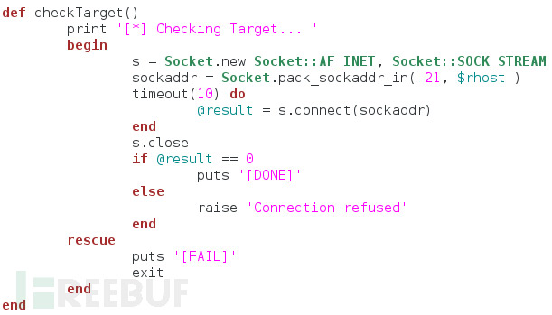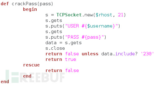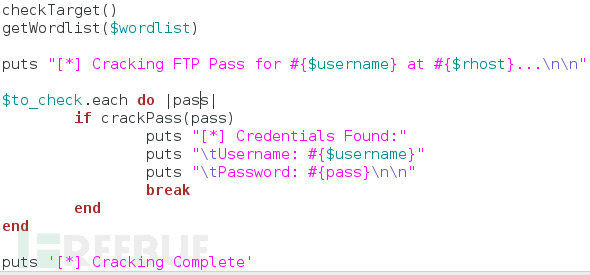 這里我們將會使用到Ruby腳本,來構建我們的FTP密碼破解器。如果你不是很了解Ruby腳本,不用擔心,我已經為大家準備了 Ruby的基礎教程 ,該教程涵蓋了本文中所用到的一些Ruby基礎知識,因此我建議大家在閱讀本文之前,先去掌握一些Ruby的基礎知識,以便更好地閱讀本文。下面我們直接進入代碼部分。