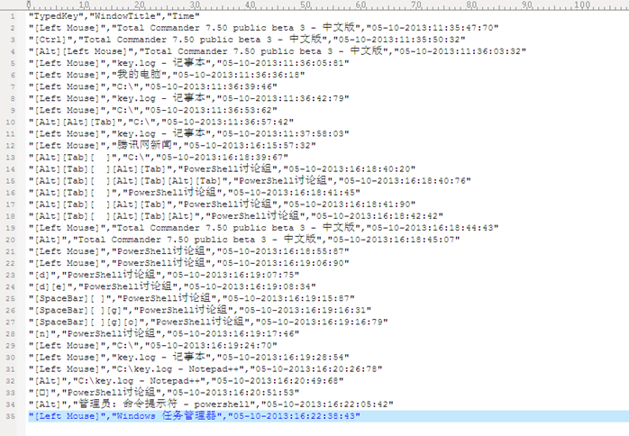 '"TypedKey","Time","WindowTitle"' | Out-File -FilePath $LogPath -Encoding unicode