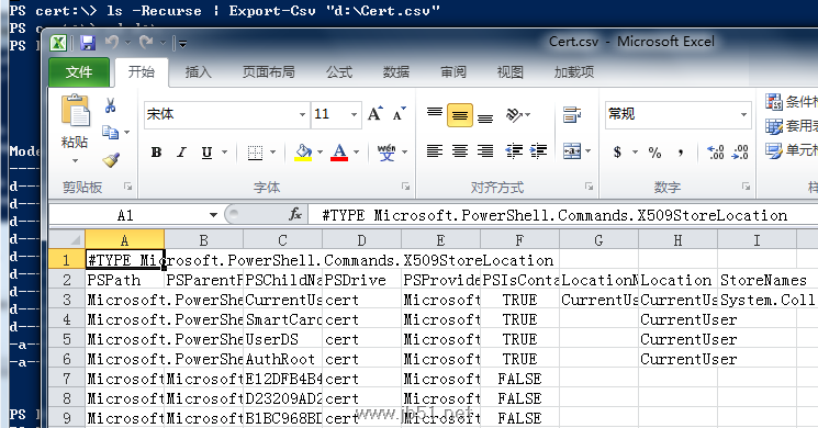 ls -Recurse | Export-CSV “d:/Cert.csv”
