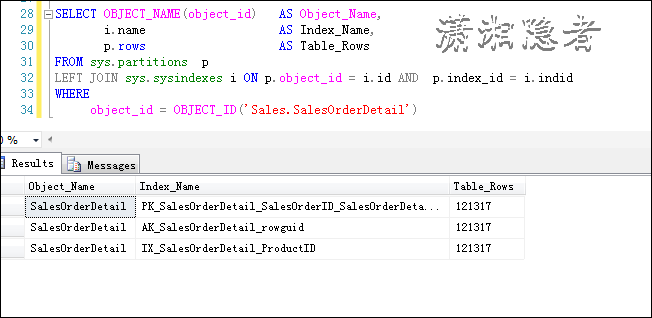 在SQL Server數據庫中, 對象目錄視圖sys.partitions中有一個字段rows會記錄表的記錄數。我們以AdventureWorks2014為測試數據庫。