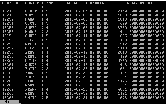 1、 Vertica 內(nèi) Sales 表字段及數(shù)據(jù)說明(通過 vsql 查詢,本測試庫有 2013/14/15 年數(shù)據(jù))