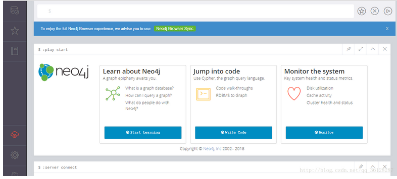 3、登錄 http://localhost:7474/ ,則顯示出