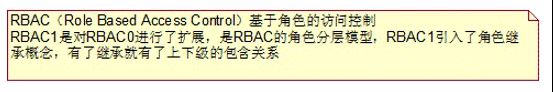 2、RBAC1和RBAC2兩者都包含RBAC0,但各自都增加了獨立的特點,它們被稱為高級模型。