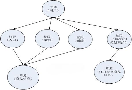 n What,即資源(Resource),如系統菜單、頁面、按鈕、類方法、系統商品信息等。資源包括資源類型和資源實例,比如商品信息為資源類型,類型為t01的商品為資源實例,編號為001的商品信息也屬于資源實例。