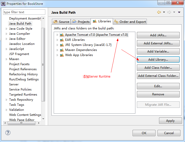 1.5、添加“服務(wù)器運(yùn)行時(shí)(Server Runtime)”,添加后的結(jié)果如下: