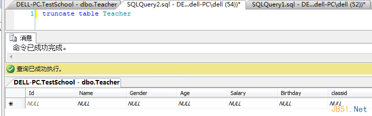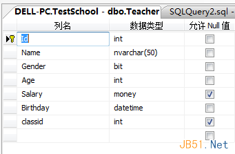 比如下面TestSchool數據庫中有兩張表[Classes]表和[Teacher]表