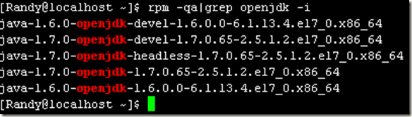 [Randy@localhost ~]$ rpm -qa|grep openjdk -i #查找已經安裝的OpenJDK,-i表示忽略“openjdk”的大小寫