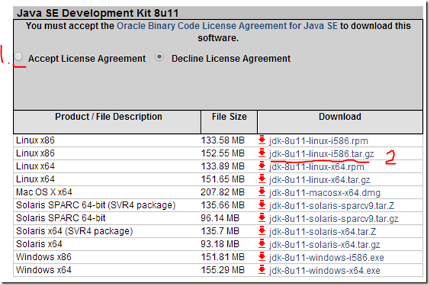 2、以前的Linux版本JDK有”.bin”文件可供下載,但是,現在官網只提供rpm的安裝包與tar.gz的壓縮包了,rpm安裝包是RedHat系列系統(RedHat/RHEL/Fedora/CentOS)特有的安裝文件,直接運行即可,但我們不知道其中的配置方法。所以,為接近底層,我選擇tar.gz的壓縮包予以安裝。