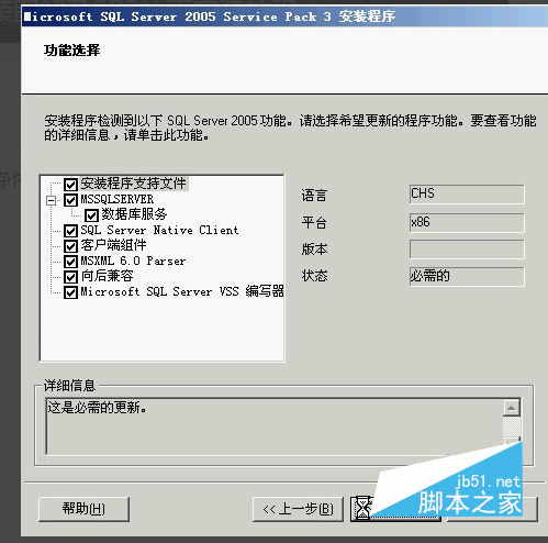 13,安裝版本根據自己選擇的版本找相關補丁,我用的是SQLServer2005SP3-KB955706-x86-CHS.exe