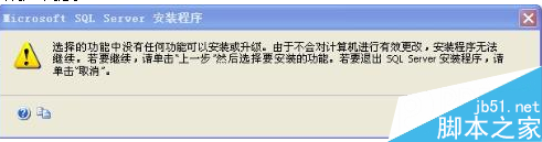 一:安裝sql server 2005過程中出現如下問題:“選擇的功能中沒有任何功能可以安裝或升級”: