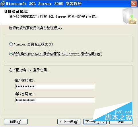 10.選擇身份驗證模式,一般選擇混合模式,然后設置sa用戶密碼,此密碼是安裝完成后sa登錄的密碼。