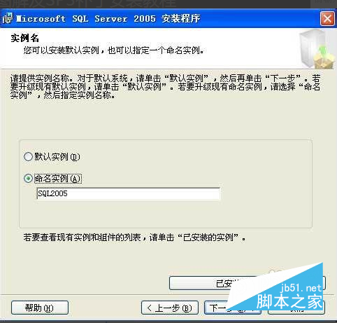 8.如果你原來機器上有sql server2000,請不要選默認實例,你選了默認的實例后,將會指向sql server2000的實例,這樣會對后續使用SQL2005很不利;如果之前沒有安裝過其它版本的數據庫,推薦選擇默認實例。