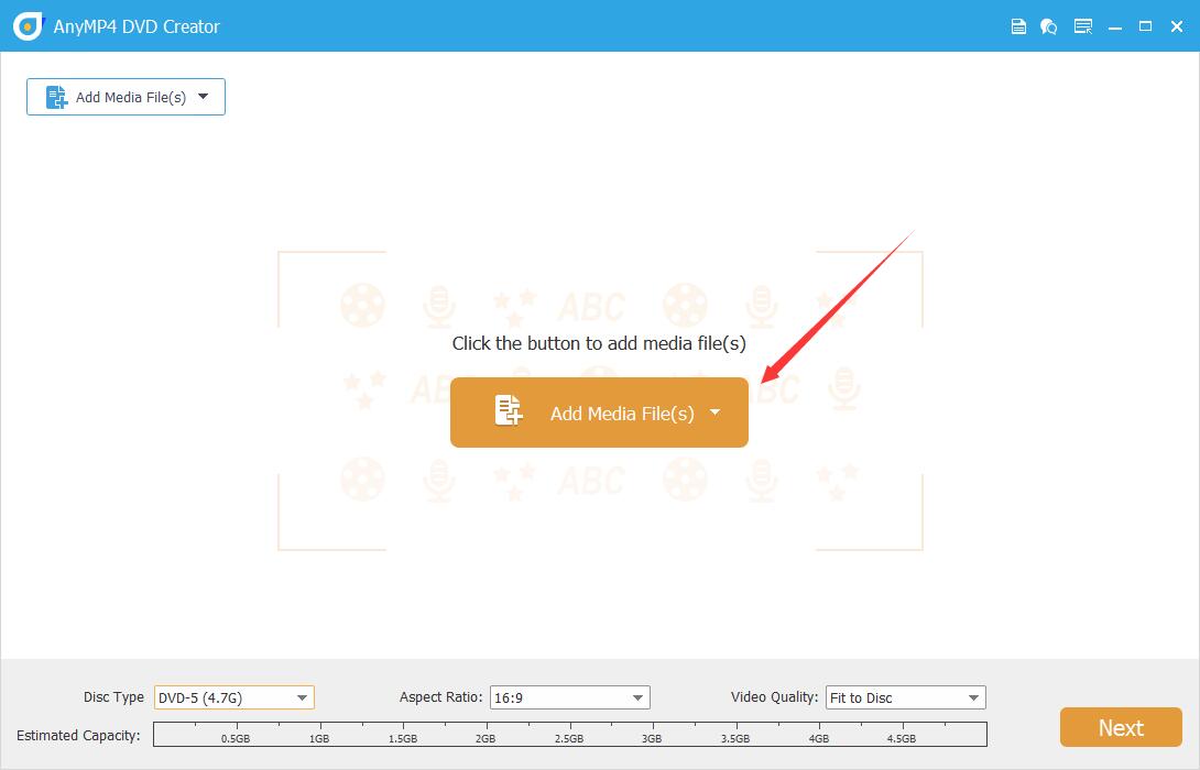 4、點擊【Add Media File(s)】按鈕,然后添加要刻錄的媒體文件。