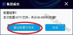 8、恢復(fù)完成,彈出提示信息。點(diǎn)“前往恢復(fù)文件夾”,可以到恢復(fù)文件夾看剛才恢復(fù)的文件。