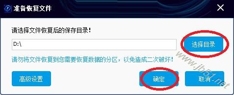 6、點(diǎn)擊“選擇目錄”按鈕,選擇恢復(fù)的文件保存在哪個目錄。然后點(diǎn)“確定”按鈕。