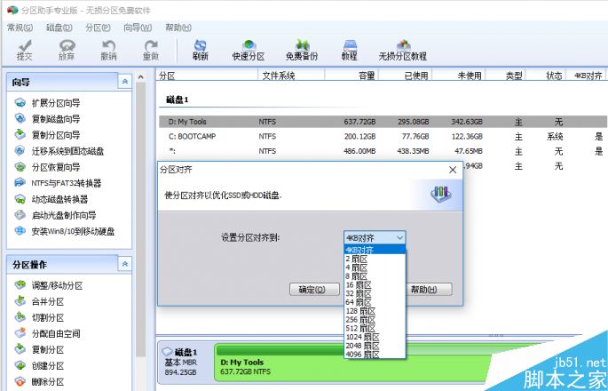 在彈出的對話框中選擇“4K對齊”,就算是設(shè)置成功了,其他盤符也要按此步驟操作。
