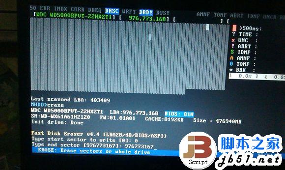 如果壞道較少,我們可以用MHDD軟件對壞道盡心屏蔽,可以得到意想不到的結果,下面以我的WD500G筆記本為例,進行硬盤壞道屏蔽