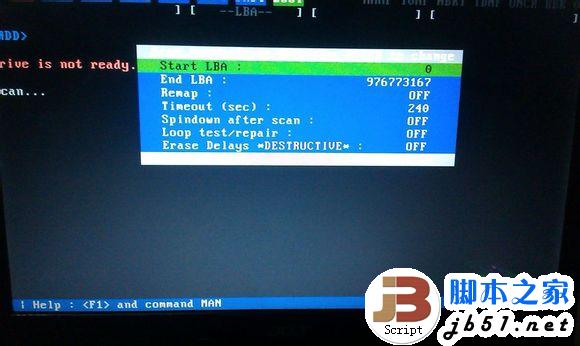 等硬盤掃描結束后,按F4出現界面,選擇第一項,選擇start lba,輸入90000,然后選擇remap,敲回車,把選項調成ON,remap就是把壞道加入壞道區間表,屏蔽壞道的速度是很快的,看不到屏蔽過程就屏蔽完了,依照此法,把剩余壞道同樣屏蔽