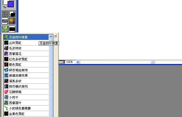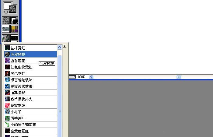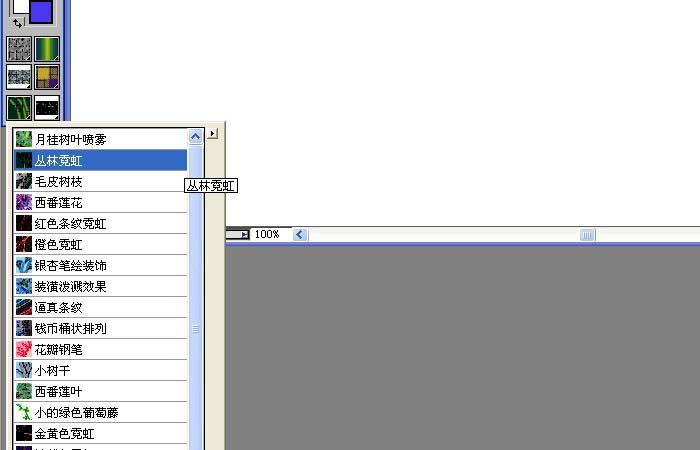 3、然后,更改畫筆效果的顯示樣式,選擇叢林樹葉效果,如下圖所示。