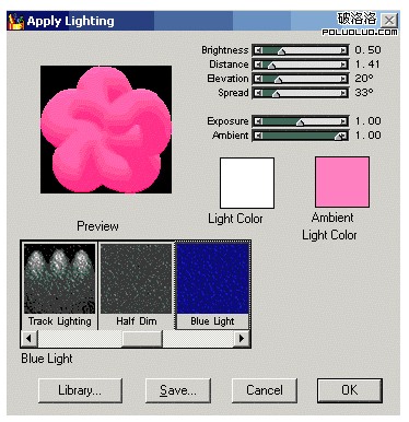 6、新建一個層,改變顏色為粉紅色,改變筆刷尺寸,在花的后面畫 選擇apply lighting ,選擇blue light,改變顏色為粉紅色 。