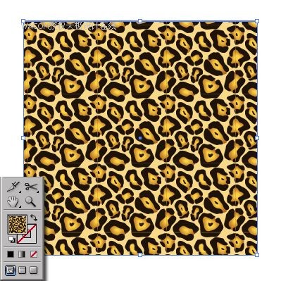 1.在Illustrator CS中新建一個(gè)RGB模式的空白文件,使用矩形工具按住Shift鍵畫一個(gè)正方形。填充Jaguar的豹紋圖案,并把正方形的輪廓色屬性改為無色。