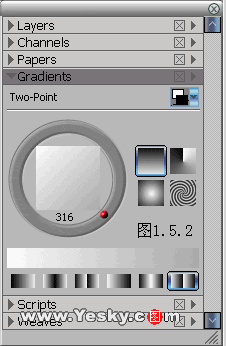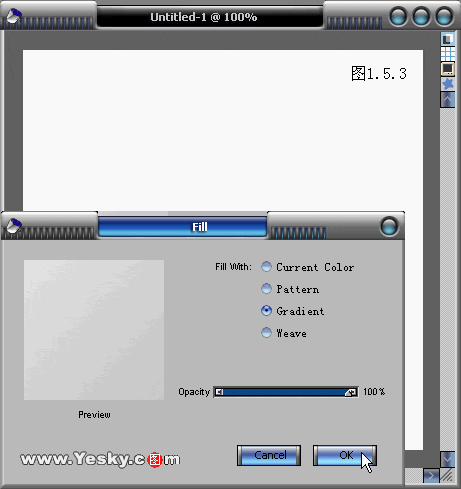 3.【CTRL+F】打開【Fill】(填充)的對(duì)話框,選擇【Gradlients】(漸變),按OK按鈕確定。(圖1.5.3所示)