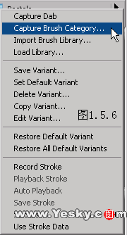 6.【CTRL+A】全選畫面,在筆刷狀態(tài)欄的三角菜單中選擇【Capture Brush Category】(捕捉筆刷種類)。(圖1.5.6所示)