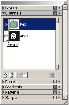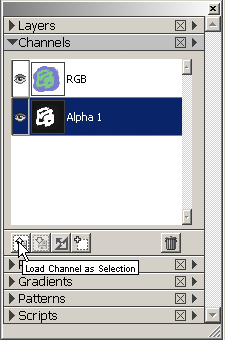 3.點選載入通道為選區的按鈕,在彈出的對話框中選擇第一項,按下OK按鈕。同時關閉Alpha 1的眼睛可見,隱藏紅色的蒙板區域。