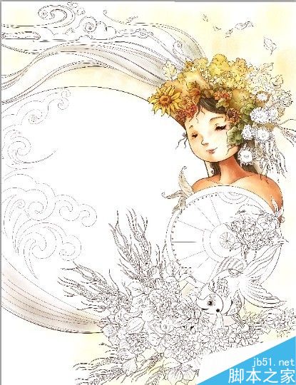 3、頭部花卉雛形慢慢形成,注意畫面的重點細節的刻畫