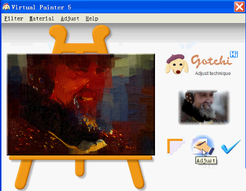6、回到virtual painte主面板,再一次點擊藍色對號,然后按Ctrl加f鍵,哥特式油畫就出來了