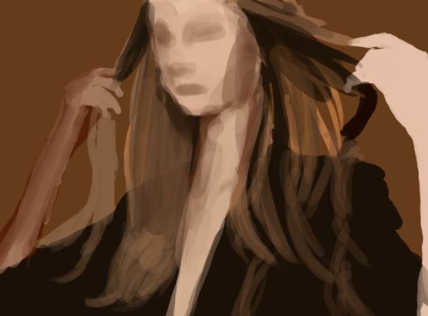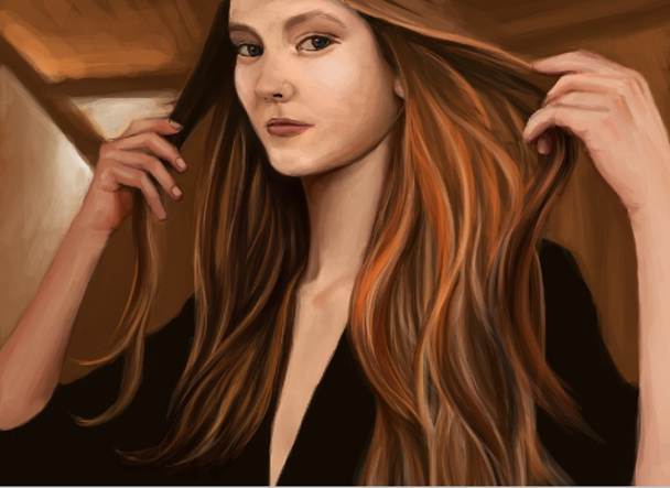 17.我們接著給人物畫上頭發(fā),注意,讓一些頭發(fā)"跳"出來會增加畫面的鮮活感,也給女性角色帶來一些生活氣息。