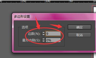 4、當邊數設置好后,內陷默認設置,然后確定,按住shift鍵建立九邊形,得到如圖效果,可以更改顏色設置