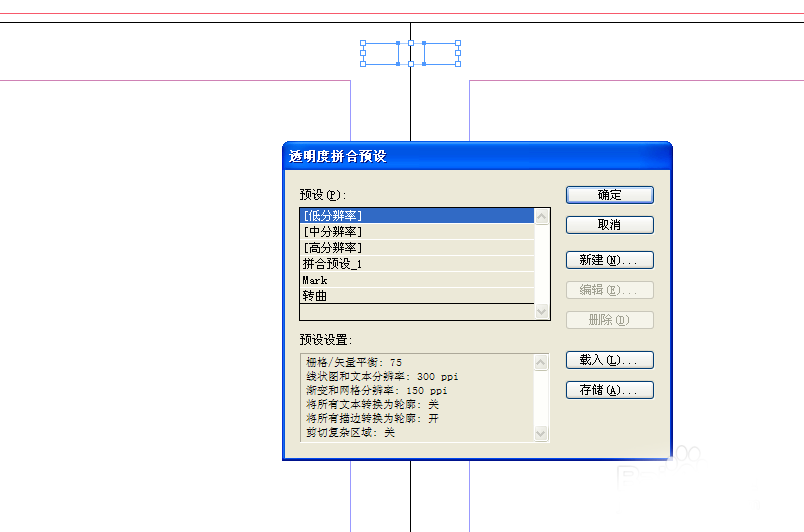 4、保持兩個(gè)矩形被選中的狀態(tài),在編輯下拉中找到【透度拼合預(yù)設(shè)】(如圖)