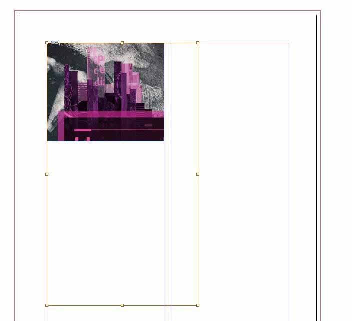 5、選擇圖片邊緣,出現調整框。可以調整位置大小。這里把方框縮小。是不是看到什么。圖片下部分看不到了。這里是一個重要的概念。InDesign所有顯示的內容都需要一個載體。就是這里面的方框。可以看做是一個視口。只有視口范圍內的才能看的見。超出的不可見。