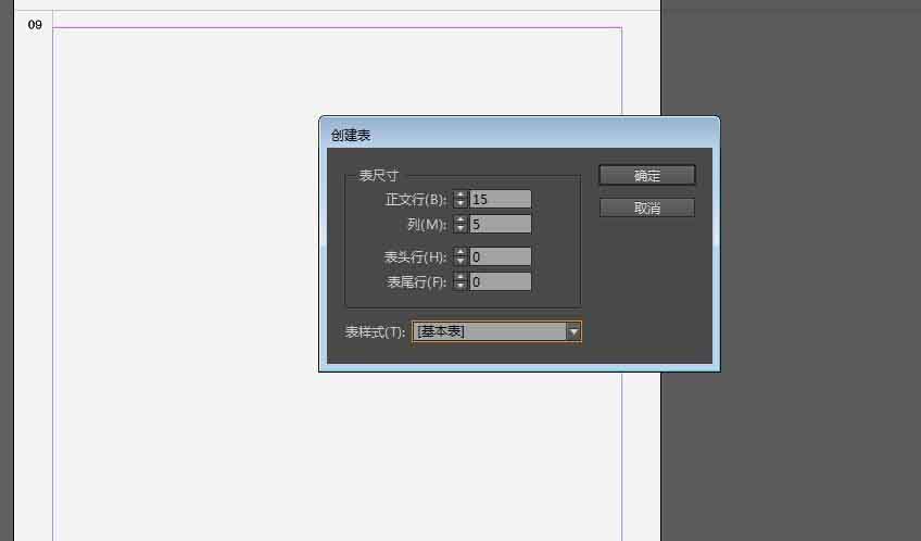 也是indesign自帶的表格創建。新建一個文檔,然后點擊表—創建表,出現對話框后輸入行和列的數量,點擊確定。