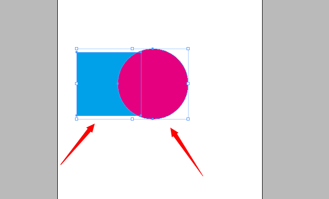 4、現在我們把兩個圖片重疊在一起,只有重疊在一起了,兩個圖形有交集了,我們才能用到路徑查找器,現在把兩個圖形全部選中。
